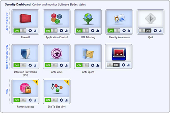 הפיירוול משולב IPS הטוב ביותר. דגמי ה-1100 כוללים את טכנולוגיית הפיירוול המוכחת ביותר בתעשייה, אשר מבוססת על אותה הטכנולוגיה של צ'ק פוינט אשר מאבטחת את חברות ה-Fortune 100. יחד עם ה-IPS של צ'ק פוינט (דורג כ-“Recommended” ב-NSS), דגמי ה-1100 מבטיחים הגנה של אתרים מרוחקים מפני איומים מוכרים ולא מוכרים. יכולות הפיירוול מהדור הבא של צ'ק פוינט משלב בתוכו שליטה באפליקציות, URL Filtering, Software Blades, לאבטחה משופרת והפחתה בעלויות. זיהוי, מאפשר לחסום או להגביל שימוש באלפי אפליקציות, כולל Web 2.0 ורשתות חברתיות, ללא קשר ל-port, פרוטוקול או טכניקות אחרות ברחבי הרשת. בעזרת השילוב של Identify Awareness Software Blades, אדמיניסטרטור יכול לייצר מדיניות כדי לאזן את העומס בין אפליקציות משתמשים ואבטחה.