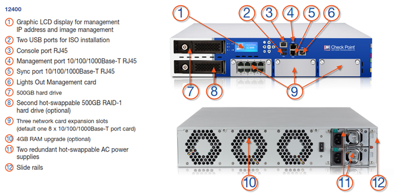 בעזרת ביצועים יוצאים מכלל של תשתית ה-Software Blades ויציבות גבוהה, דגם ה-12400 של צ'ק פוינט הינו מכשיר אבטחה ברמת הדטה סנטר, אשר מציע יתירות ומודולריות. בנוסף, הוא מציע onboard 1 Gigabit copper Ethernet ports, three ו-expansion slot זמינים היכולים לשמש להגדרת אפשרויות רשת נוספות כמו 1Gigabit Ethernet copper,1Gigabit Ethernet fiber, 10Gigabit Ethernet fiber.