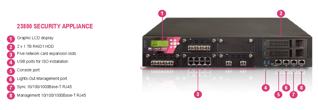 The 23000 appliances protect organizations from both known and unknown threats with Antivirus, Anti-Bot, SandBlast Threat Emulation (sandboxing), and SandBlast Threat Extraction technologies.