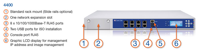 דגם ה-4400 של צ'ק פוינט מציע פתרון אבטחה מלא ומאוחד, בעזרת ביצועים מובילים בגורם תצורה 1U.