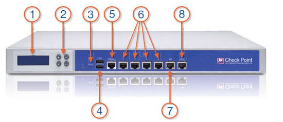 - Console port—for a serial connection to the appliance using a terminal emulation program such as HyperTerminal