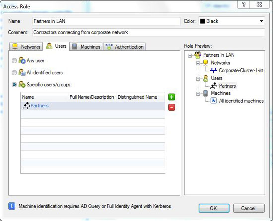 Provide corporate access for specific groups or users leveraging network-wide identity awareness