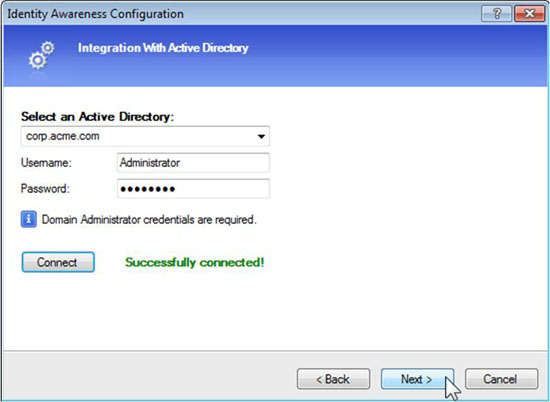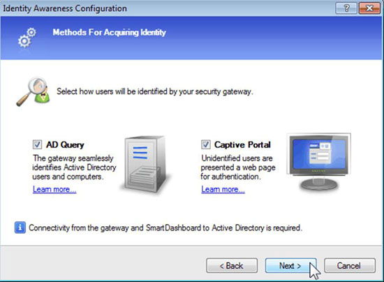 Adding identity intelligence via the Identity Awareness Software Blade is fast and easy with our built-in deployment wizard. In just a few simple steps you can add user, user-group and machine identity awareness and obtain valuable information to utilize in policies throughout your security infrastructure.