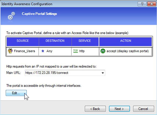- Captive portal - This method is used to acquire identities from unidentified users, providing security for endpoints that are not part of the domain. A given user authenticates through a web interface before gaining access to predefined resources for that user profile.