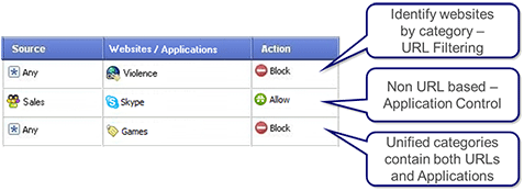 - One common rule-base to simplify policy creation with joint categories for both websites and applications